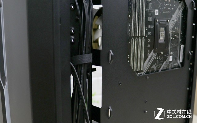 机箱背板上为背线设计了单独的开孔,CPU供电走线孔和跳线走线孔都方便玩家布局线缆,充足的扎线位也可以更好的固定线缆,让背线效果更加清爽。