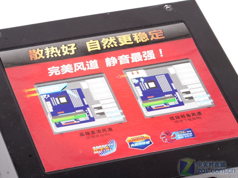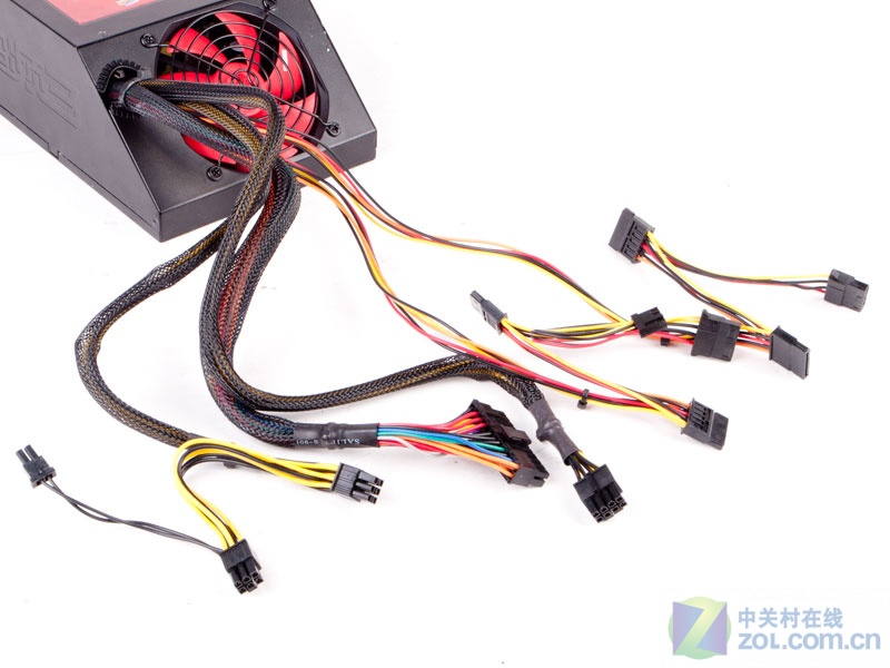 超频三A30电源外观与一般电源一样,同样采用全黑化处理,主要是为了防止电源外壳在看空气中的老化。并且也是跟随目前主流电源设计的风格。电源采用斜吹散热设计,因此电源风扇被设计安放在外壳的斜面上。另外为了保证电源散热需要的风量,以及电源的静音效果,电源采用一款10cm散热风扇,为电源散热。另外斜吹式设计,还解决了传统电源风扇转速不能过快的问题,因为电源风扇过快的转速会导致风向反弹,不但不能达到良好的散热效果,而且还会严重影响风扇的使用寿命。电源后部出风口的电源插头处,带有一个独立的电源开关,可以在关闭电脑后,关闭开关实现待机零功耗。这款电源的额定功率为400W,采用双路12V输出,两路通过电流分别为17A和14A,12V最大输出功率最大为550W。电源采用主动PFC设计,工作电压可在100至240V电压之间工作。另外电源通过了80Plus白牌认证,但是转换效率最高却超过了85%,同时,待机功耗小于1W。电源除了配有一个20+4Pin主电源线和4+4Pin CPU供电线之外,还配有2个6+2Pin、5个SATA接口、4个D型口,足以满足普通平台的需求,并且在主要电源线均带有蛇皮包线设计。